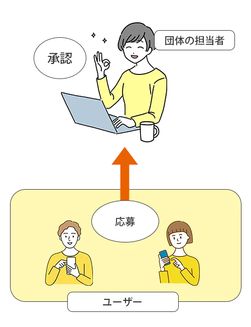 募集情報の掲載後、アプリユーザーから応募があった場合には承認作業を行います。